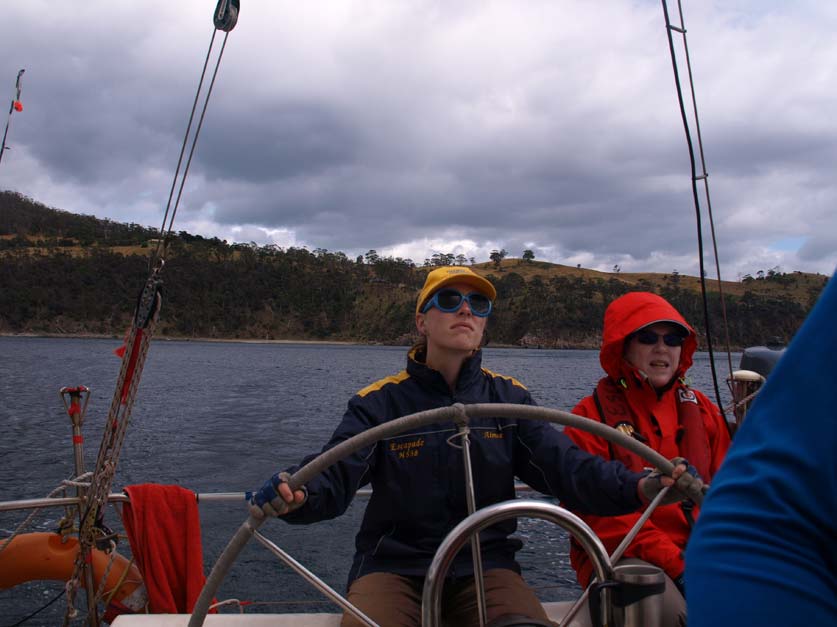 Robert helms out of Tasman Channel with Tasman Island in background