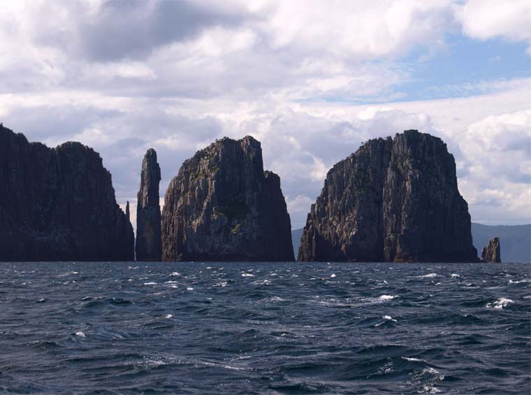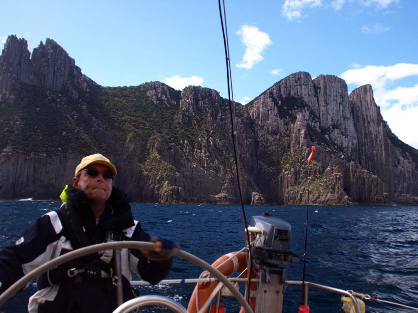 Once through the channel we are in the lee of the land, and the sea state is much calmer. A stiff south wester runs us up the coast towards Cape Hauy, which was named by the French explorer Baudin after a French mineralogist, curious, as Baudin was a captain of a scientific expedition, but he despised scientists.
