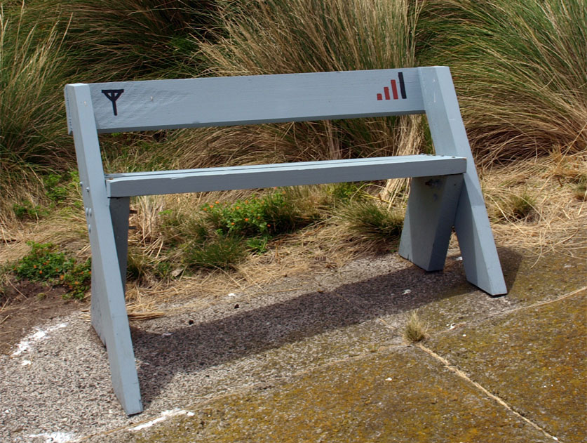 We get away around 13.00, and run the tender up on the beach next to the East Cove Jetty. We drag it up the beach and anchor it safe from the incoming tide. There is a steep sealed track that leads up the hill to the lighthouse keepers residences, some fifty meters above the bay. At the first switchback there is a wooden seat facing out towards Murray Pass. Engraved into its back is the cellphone connection signal and three bars.