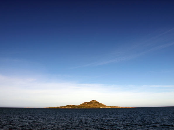 The mountains of Flinders Island gradually fade into the blue afternoon mist and the cliffs of Deal Island rise before us, we can now just make out the lighthouse.