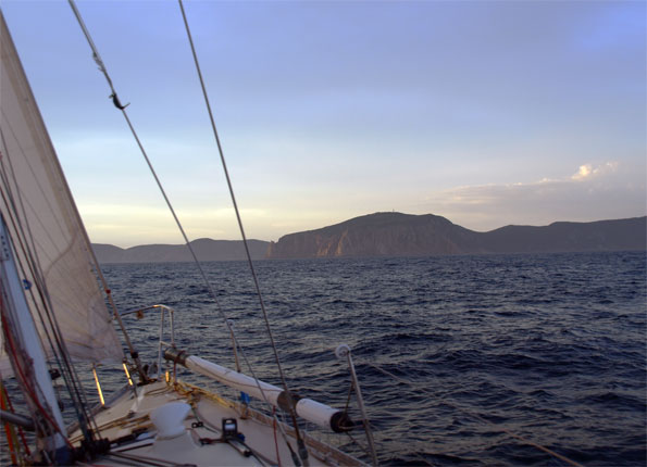 It is a tight thing. It is now five o’clock and we still have eighteen nautical miles to sail, which will have us arriving at Deal right on sunset. Robert trims the sails for maximum speed. The wind has swung slightly to the east in our favour, and the swell has picked up a little. We are now making six and a half knots. Life is good.
