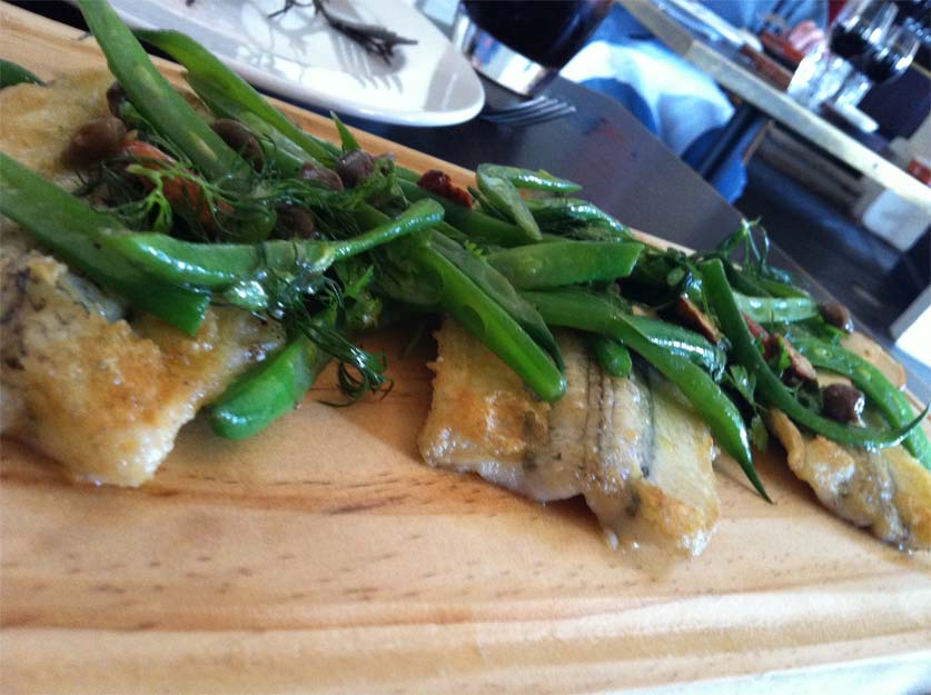 A few minutes and a couple of B&H later he returns just in time, as the lightly sautéed garfish with local green beans, almonds, lemons and dill arrives. Arthur is happy, and orders another coke to pair with the fish. The whole degustation concept agrees with Arthur, plenty of opportunity to whip outside and knock over a couple of durries.