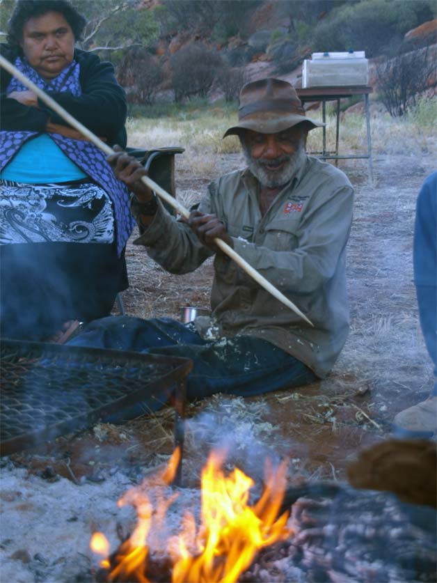 Victory Well has memories that seem to come alive as the orange firelight bounces off the trees. A barn owl screeches nearby, I shine my torch up and behold a mating pair in the branches above us. Years ago I brought my dear friend Michael Blunden to this place. Michael sadly passed a few years ago well before he should have. I remember delivering a eulogy to him where I said how his spirit would now be soaring above the sandhills and the desert ranges, and somehow I sense him here. I also brought the previous Minister for Conservation in the Victorian Government Marie Teahan here, she has also passed. Better not tell my fellow travelers, or they might get nervous, there could be a pattern here. I remember back to my first visit over 20 years ago. I was brought here by Anangu Elder Peter Nyaningu. We arrived at sunset and set up camp. What I didnt know is that we were camped on an Inma Ground or “corroborree site”, and Peter had organised an inma for that evening. The entire Mimili community arrived and as the last light of sun turned the granite tors deep crimson, the Anangu started chanting to clapping sticks, and painted and feathered dancers re-enacted the creation stories of the Tjukurpa by the light of the fire. This is a place without time, where memories of the past float comfortably with the present.
