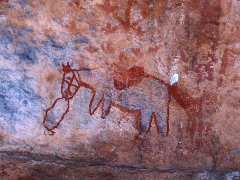 On one wall there is a more modern painting of a horse with a saddle and bridle. Perhaps a station horse, or perhaps even Ernest Giles’ Fair Maid of Perth. He passed a little north of here in 1874 and recorded in his journal that, “Here a white man could truly live and be happy…”