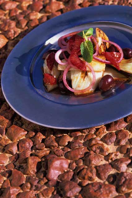 - Peel the blood oranges and remove all the white pith. With a paring knife, remove orange segments, strip them of their individual membranous coverings and place them in a bowl. Discard the membrane, having first squeezed any juice it may contain into the bowl. Slice the fennel vertically into thin slices and add to bowl with the olives. Make a dressing by mixing the olive oil and red wine vinegar, and seasoning to taste. Toss all the ingredients together and serve in a bowl.